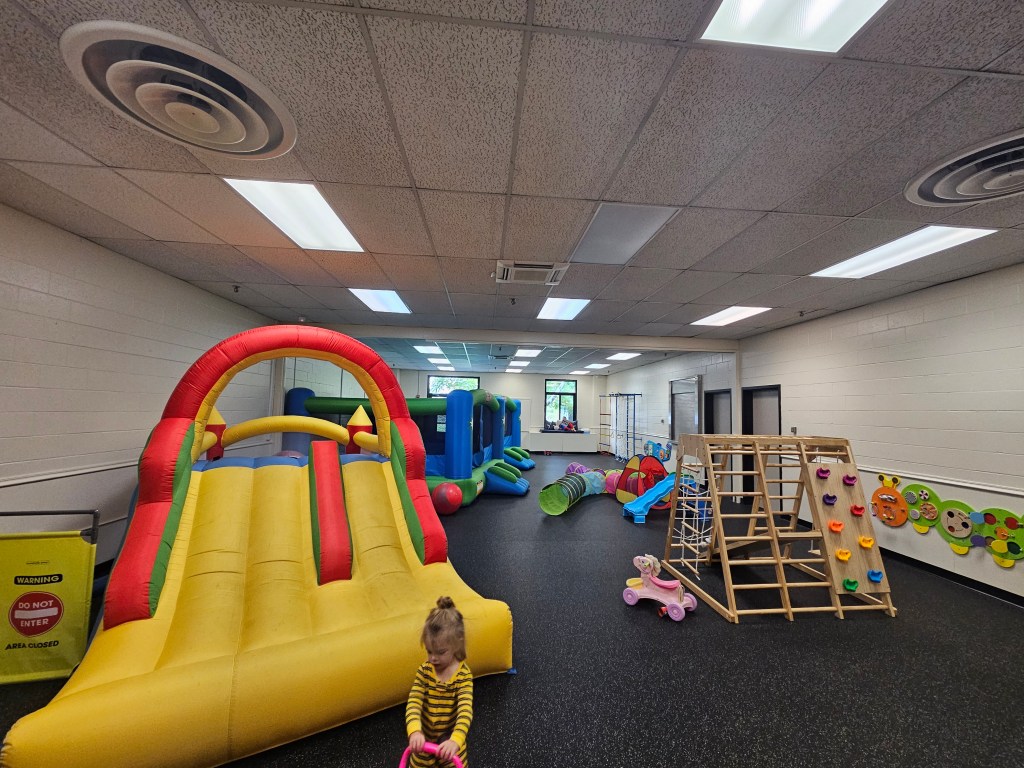 This is a place to kill time but don’t expect too much unless your kids is an avid jumper and reallllly reallllly loves bounce houses. I’m sure if you wanted to research open swim times and other activities that WCC does you could plan to go to the Tree House around that and it’d be much more worth it. But if you’re just looking to meet up with some other moms for an hour or so while your littles crawl around or jump to touch the ceiling this place will satisfy you and more importantly your kids. I think ages 2-6 are best for this place but if you have baby siblings there are safe spots and areas to let them explore, if you aren’t comfortable with them inside the bounce houses.