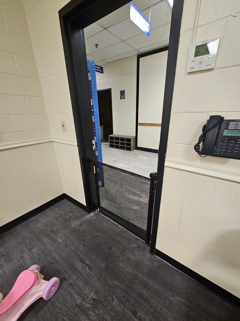 Aside from the houses, there isn’t much else to do. There’s a medium size, wooden climbing structure. It has a way up by handle bars. It leads to no where except confidence in your child that they made it to the top. There’s a swing attached to this structure and a small slide on one side. [Updated 10/10/23] As of this date, they have added another climbing structure. It’s not toddler friendly but the older kids can easily do it. Theres a rope ladder for climbing to a small set of handlebars. A net climbing up is next to that and it’s meets a bar ladder on the end. Across from the ladder is hanging ropes to swing or do flips on! They have also added sensory boards! One is in the shape of a caterpillar and it has knobs for moving, locks for unlocking and locking and inside is difficult things to feel. The other board is an airplane it has the same type of things, gears, magnets and knobs.