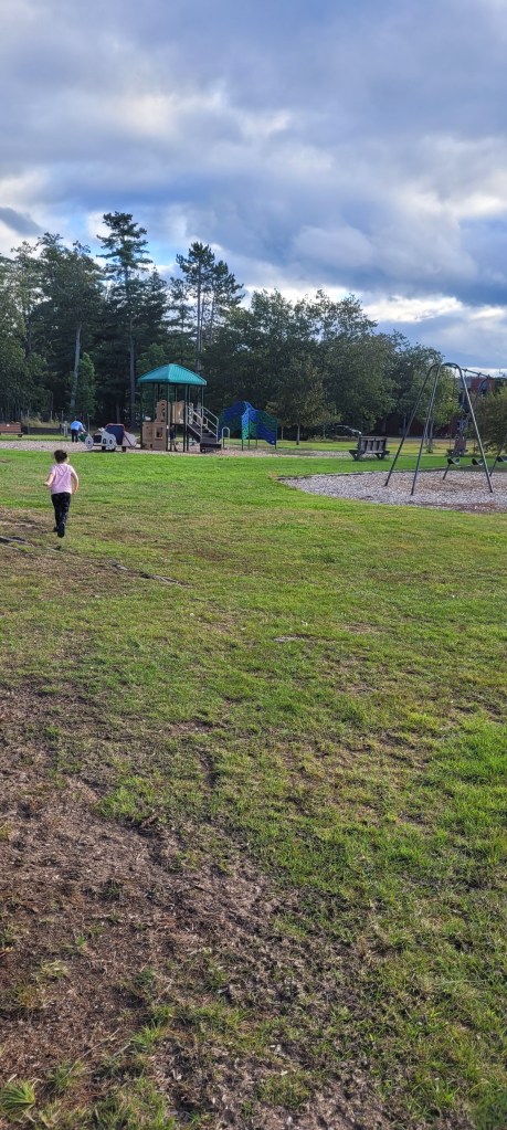 The park is pretty easy to find but parking can be sparse and it’s a bit of a walk from the lot to the playground. There’s one porta potty and a half dozen benches around the playground.