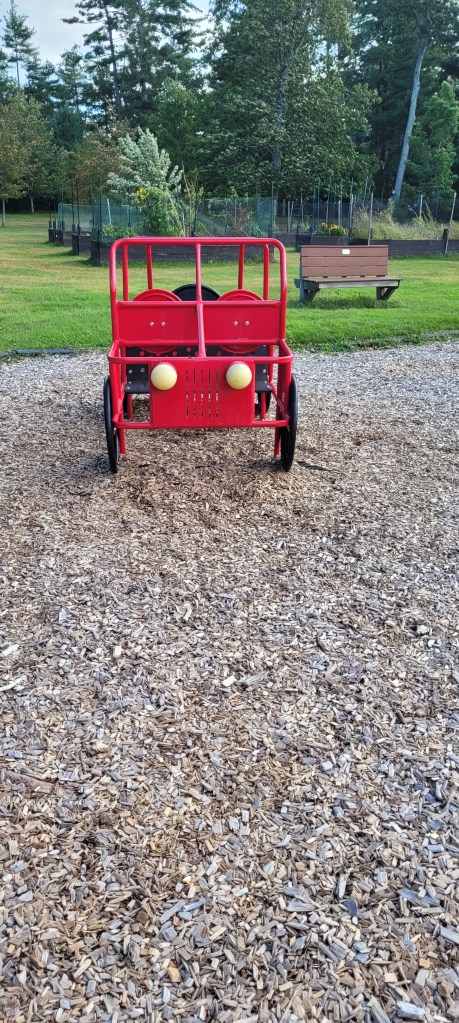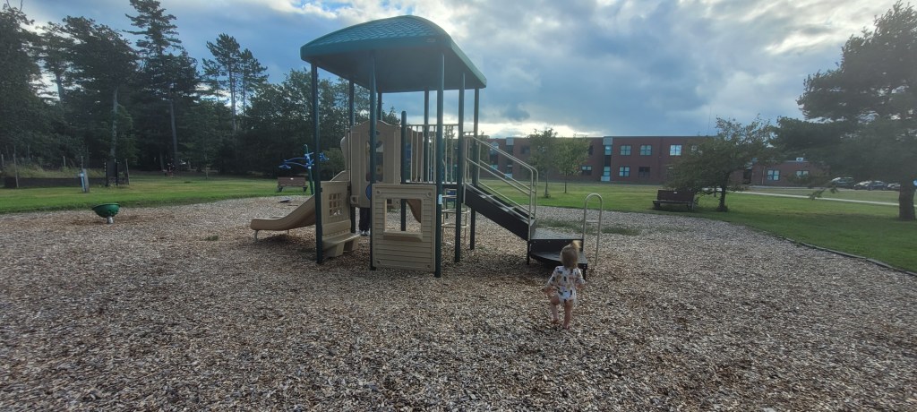 This is a fairly small playground but it’s entertaining enough, especially if you’re kids have a good imagination. A small grassy, woody area is behind the playground, along with a garden and a fenced off bee hive collection area. We walked around a couple times and stretched our time here. I’d say this playground is for smaller kids, my 18m definitely enjoyed it more than my 4y, although she did throw a fit because she didn’t want to leave. Whether this was because she’s just recently stopped naps or she really did like it that much, I don’t know but I did find her wandering around the playground a lot until she realized the little window where we did a lot of pretend play. If you’re in the area it’s worth seeing but if you’re driving 30m or more than I’d say skip it and find one closer to you.