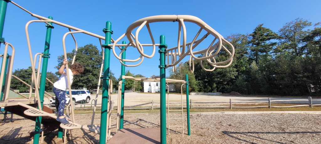 I have been coming to this playground ground since my 4y could walk. She loves it. I love it. We love it. This playground could be hard to find if you aren’t looking. It’s tucked in the back of two different building so just pull in and drive to the back, you’ll see it. Parking is plentiful and a stones toss to the playground.