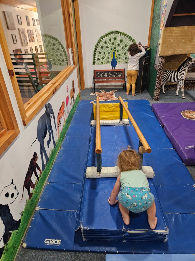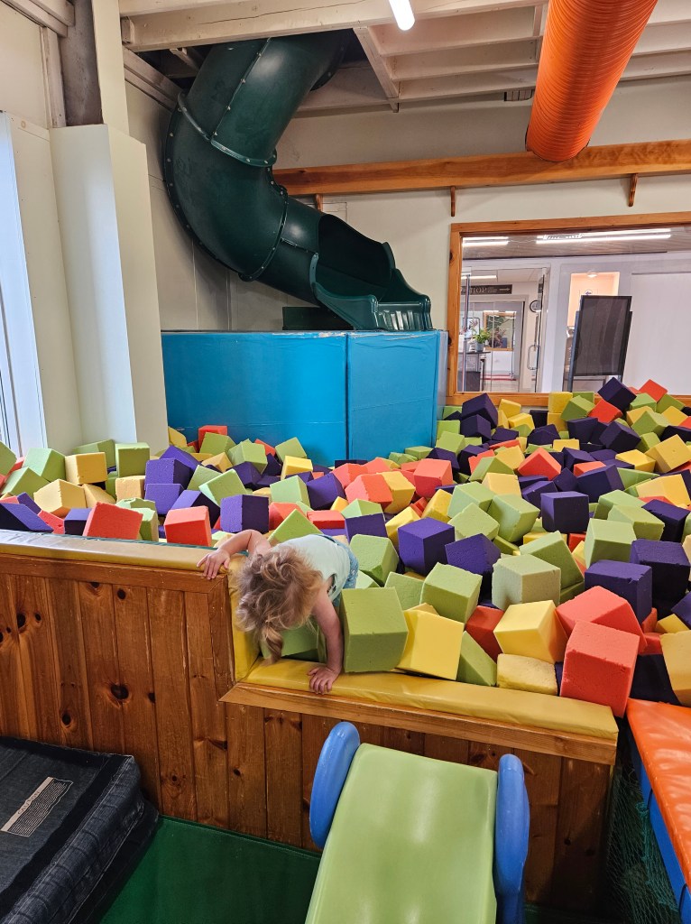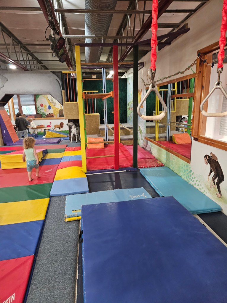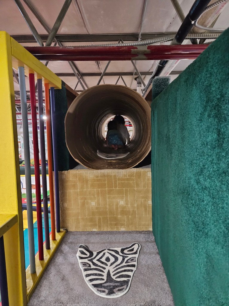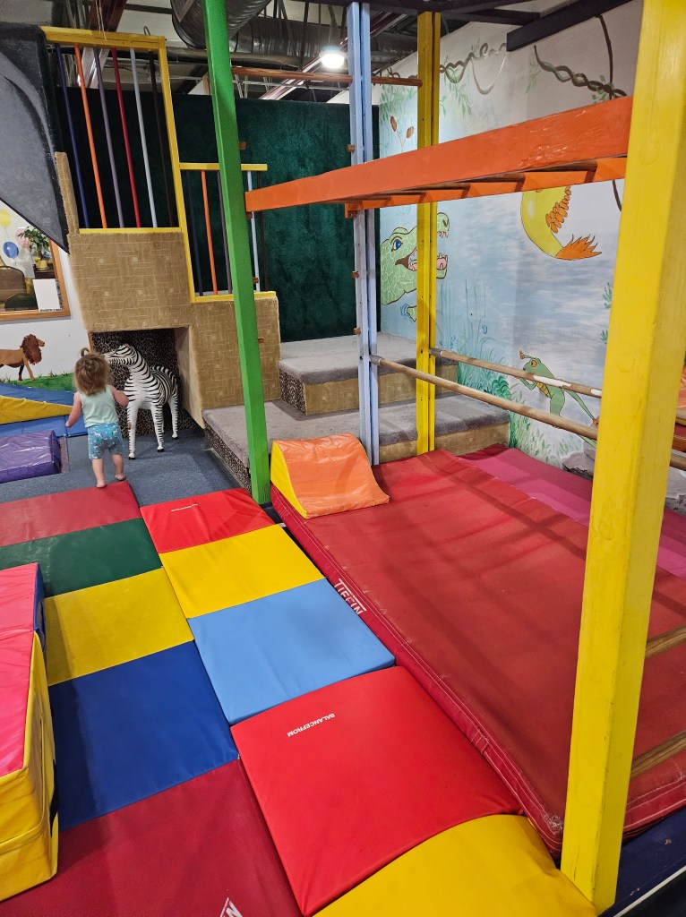 I recommend this for all ages. Everything is soft. There are lots of different climbing structures in all the areas which can be used by all ages. I have pictures of the inside and what to expect. There is so much I’d have so much to write if I were to list everything. However our favorite things or notable things are the secret tube slide that goes from the second floor to the preschool area into a foam pit. We do it at the end or when we’re ready to go from the second floor to the first. They also have viewing rooms if your comfortable with just letting your older kids run around. My 4y really likes the long trampoline to run along and then jump into a big foam pit. The various types of handle bars!