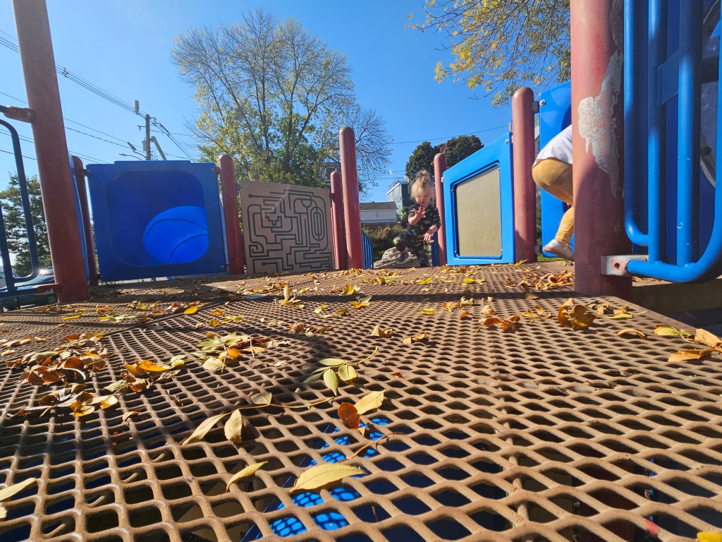 When I was a nanny, my nanny kid and I came here every single day until she was about two years old. It’s been 13 years since I’ve been here and nothing has changed. No updates, no upkeeps but still a charming playground. It’s a good playground for all ages up to I’d say 6 or so. It has just enough to do you could realistically spend 45m-hr more if you do a picnic across the street. For the purpose of knowing, I do wanna say that marijuana was definitely being smoked somewhere nearby but I could not see it. This doesn’t bother me but again I’m just stating so yall can make an informed choice. Another thing worth stating is, just down the hill of the field is the tent community, as in the homeless campsites. Again not an issue for me nor did it bother our time at the playground. If you live in Portland, have errands in Portland, passing through with extra time to pass, this is a playground checking out. If you live more the 30m away I’d say skip it and find one closer to you. If you’re spending the day in Portland or exploring Portland playgrounds like me, stop a while! Grab coffee and food and go to the few playgrounds within walking distance of each other.