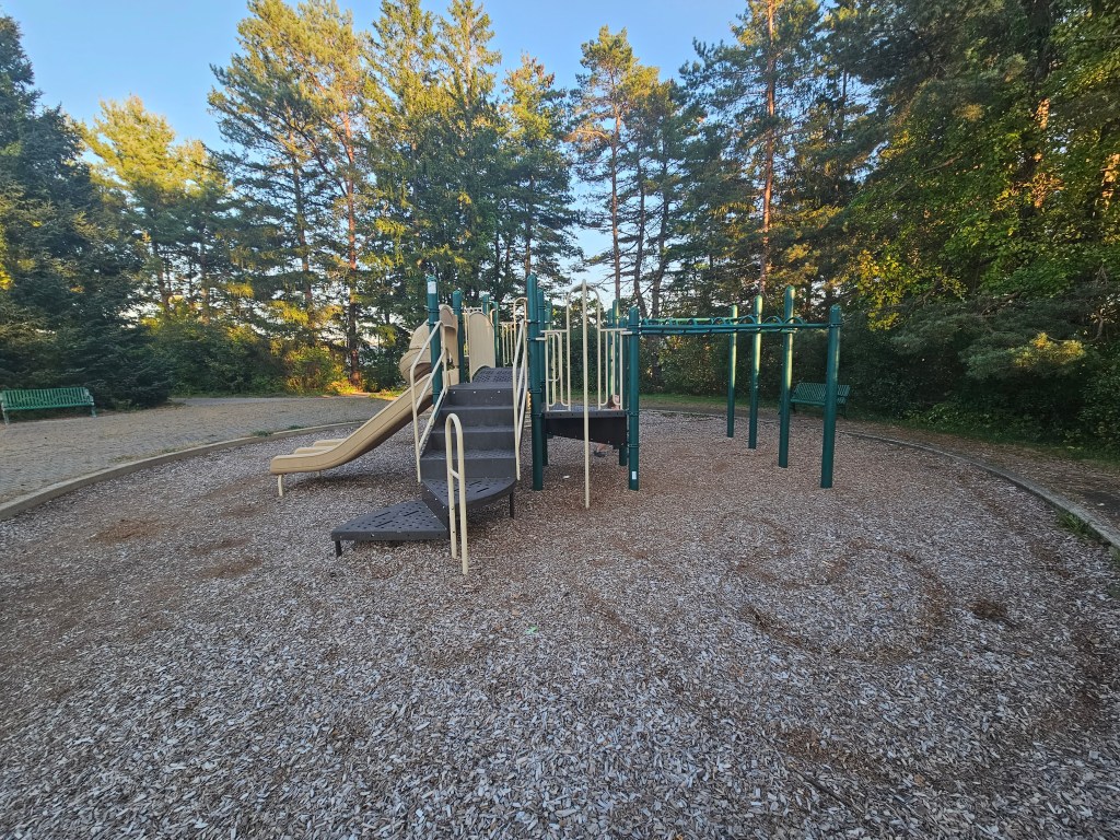 This was a really nice playground. It’s secluded and quiet. Its big enough for preschool age children and toddlers. It has enough for both to do. There is a a couple small paths that lead out to one of the falmouth shopping plazas; the one with lots for tots. If I had known where we were before going, this would’ve been an awesome day thing, where we would shop then grab a bite to eat at portland pie company, and then the playground. The playground is worth going to anyway but if you include these few activities it’d make for a really great day or bonding time. There’s a Starbucks within walking distance too! I’d check this out of you have kids over 14m or so. Basically any experienced walker and up. My 4yo loved the paths, even just going in circles and not heading towards the plaza. I’m always in this area and finding out this nice playground has been here the whole time and I could’ve been coming here for a while is a total face-palm. Falmouth library also has a story time so it would also be worth checking that out then heading across the street to the playground. We will find ourselves here often!