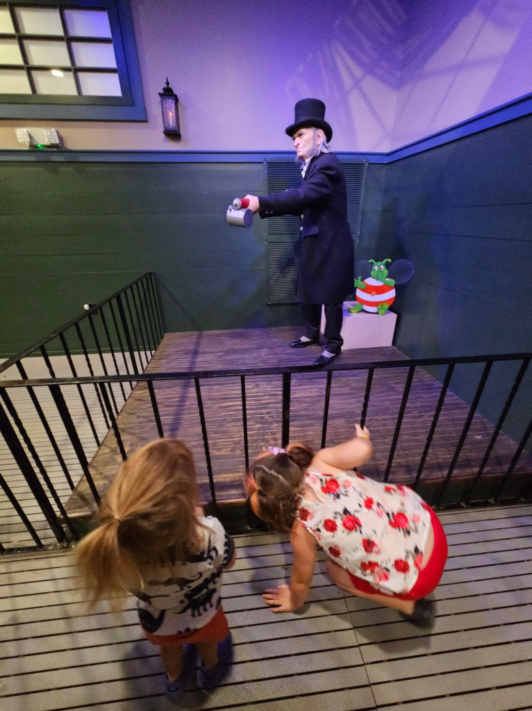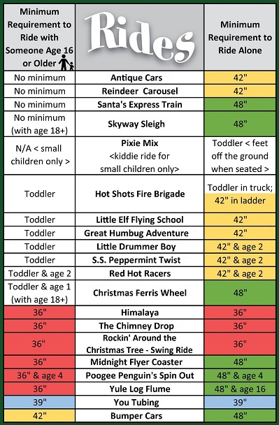 Line wait times are a BREEZE. I don’t think we were ever in line for more than 30m at MOST. Rides are all labeled with a colored peice of tape and if your child is wearing that color bracelet, given to them by staff at ticketing, they can ride! With that said, my 1yo could and did ride most if not all the rides my 2 and 5yo did! We didn’t ride every single ride but I didn’t see a single ride that looked “intense” or scary and that’s saying a lot because my 5yo does not do rides well. Some of the rides we did (including what my 1yo could have done or did), Skyway Sleigh, The Great Humbug Adventure, Santa’s Express Train, Reindeer Carousel, The Little Drummer Boy, and Little Elf Flying School. There were even more rides that we didn’t get too and as a passerby I’m pretty sure all three of my kids could have gone on if we had the time. I’ve included at the end of this post, in the slideshow of pictures, from their website, a picture list of the rides with the height/age minimums!