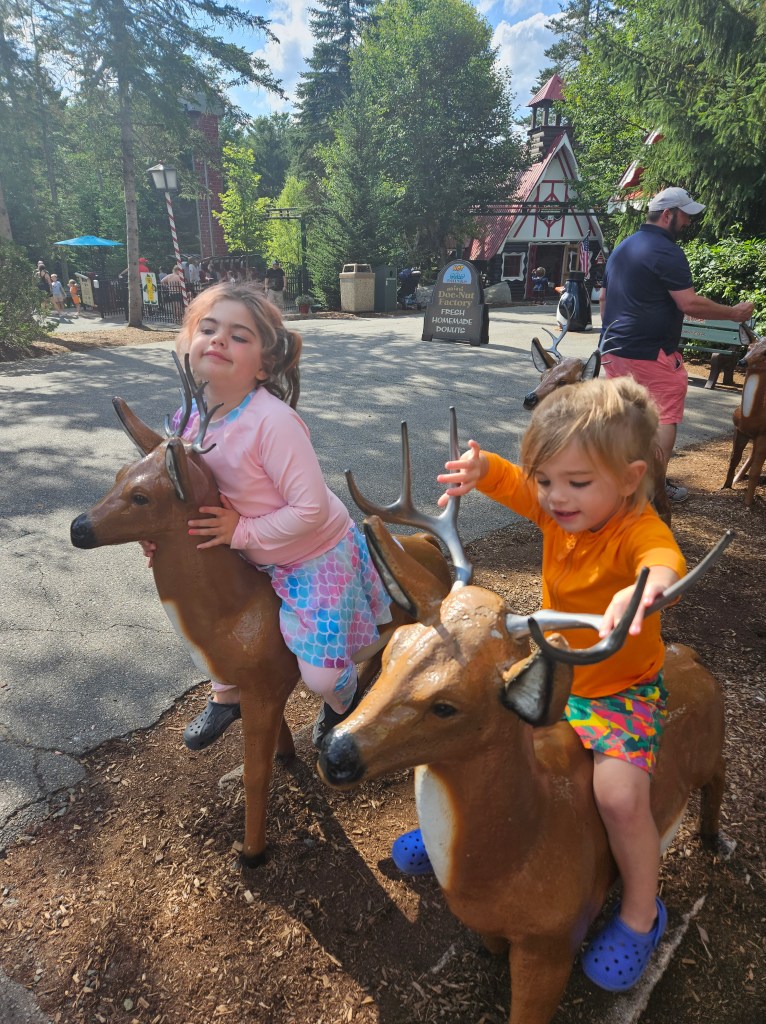 With the rides being so so accommodating, I would say Santa’s Village is for any age. And honestly if your child is under 3, they’re free so you don’t really have anything to lose. I suggest getting there at opening and staying until closing if you want/plan on doing everything and not feeling rushed. Or make it a weekend trip. I don’t really have any complaints, unless you count too much to do as a bad thing. There are smoke areas, rest areas, play areas, it really has it all. The walking paths are easy and my giant wonderfold had no issue, other than all 3 of my kids inside was HEAVY. If you visit, or have visited in the past, let me know what you love, what you skip, your favorite shop, I want to know!