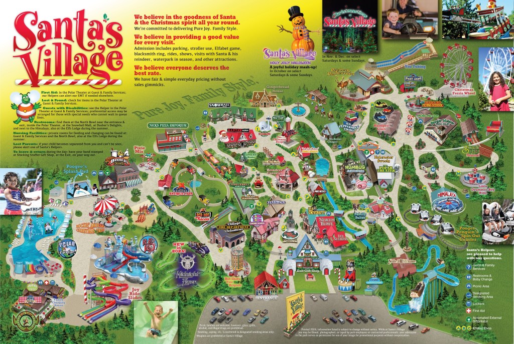The staff, or the elves, are so so sweet and they are in character when speaking to your children. We talked to a few and my children thought it was so cool to “talk to real elves!” I suggest a wagon or a stroller with storage! You can bring in your own food, which was super helpful for us and I assume it’d be good for others as well. Rides, shops and attractions are all easy to find using the map, which I’ve included a picture of at the end of this post, in the slideshow. Also restating how quickly you can ride a ride because the lines are just not that long, which is convenient when you have impatient little movers.