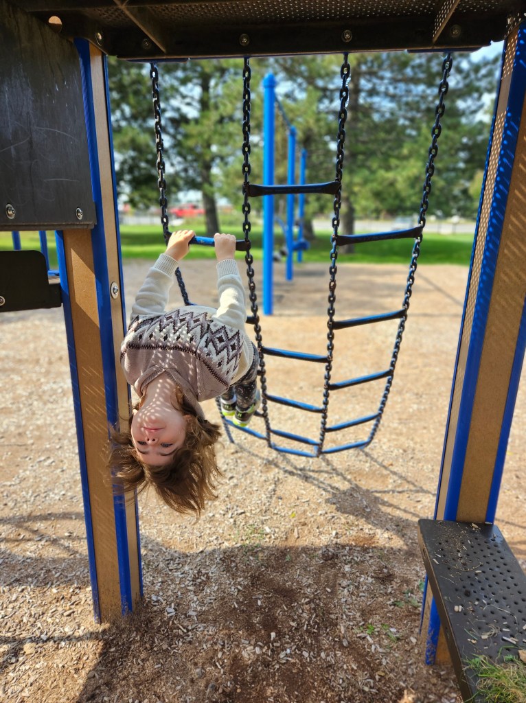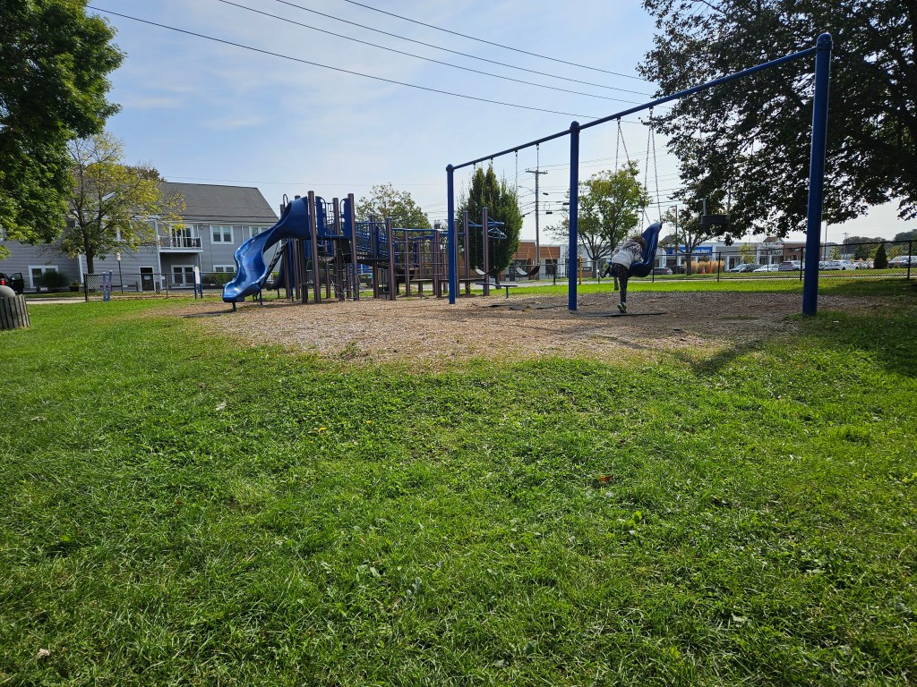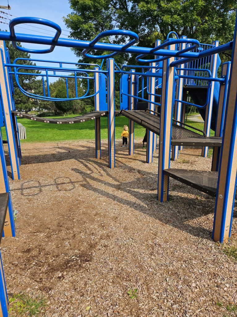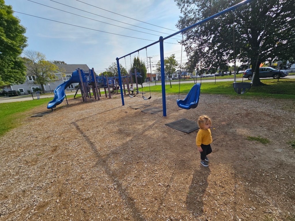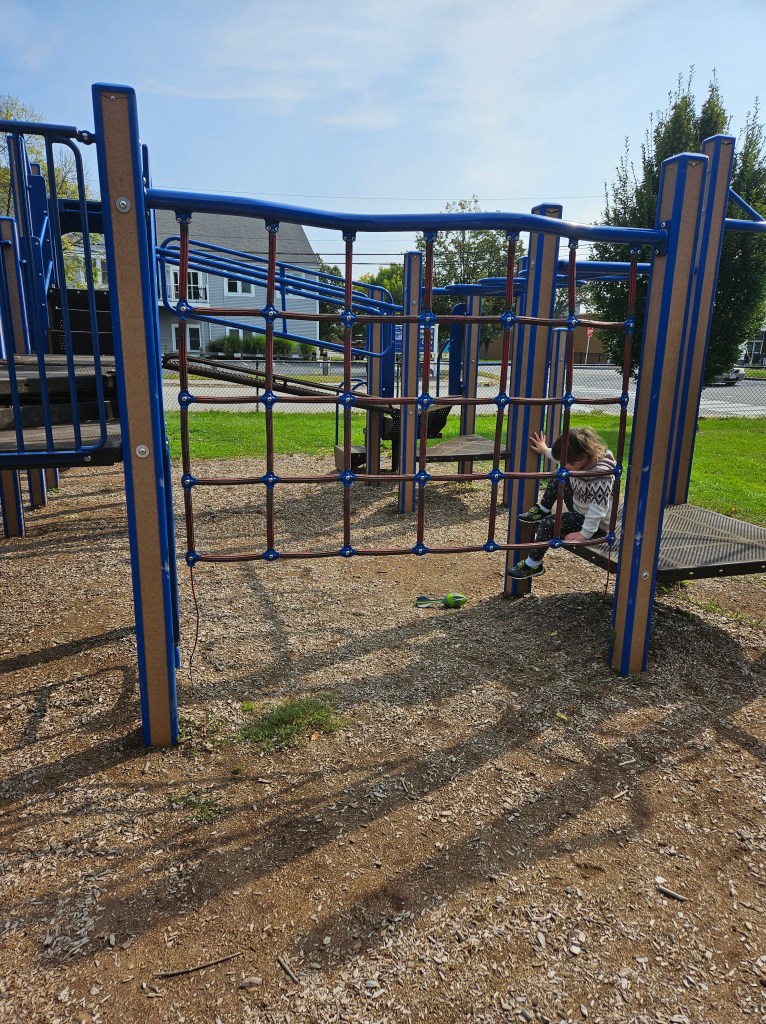 I was pleasantly surprised by this playground. The background noise of the cars nearby was relaxing as we say under a pine tree in the shade. There is a huge field for running or some ball play if you have a ball. Despite being a tall structure, toddlers can maneuver around it, with or without a parent following behind. I think this would be a good place for an even older child, maybe eight or so because of the numerous challenging things to climb. With that said it also is perfectly fine for a young kid like my daughter whose four. Both of my kids played lawyer and tried to get me to stay here longer than we did, which was about an hour. It’s worth checking out even if you’re not in the area or nearby. From Gray it takes about 30m to get to and it was totally worth that.