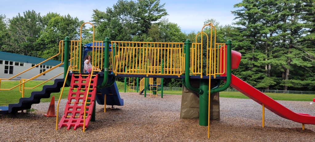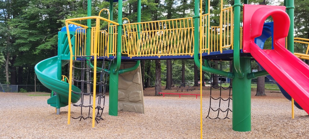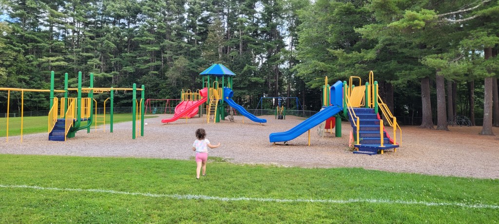 The only complaints I have are mosquitoes. We got eaten alive the entire time but I also understand there’s nothing to be done about that. The other is the sandboxes, I think combining them would make for better play and also upkeeping them. I also wish there was a bathroom but I wish EVERY playground would have them. Other than that this playground is awesome. I would say it IS more geared to four and up but if you have other younger kids there’s still stuff for them to do, especially if you don’t mind hovering over them. Being 15m away from me, it will definitely be a go-to spot when we are looking for somewhere close by to go. The sturctures are a bit high but that didn’t stop my 4y or my 17m. The see-saw drew big laughs and smiles I think my heart quite literally melted. I’m a sucker for hide and seek and there is a lot of potential for a good game of it.
