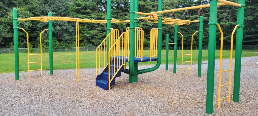 There are many reasons I love this playground and only a few complaints. Parking is easy, finding it is as easy as one, two, three. In a few steps you’re right at the playground which has four sturctures and a variety of stand alone equipment.