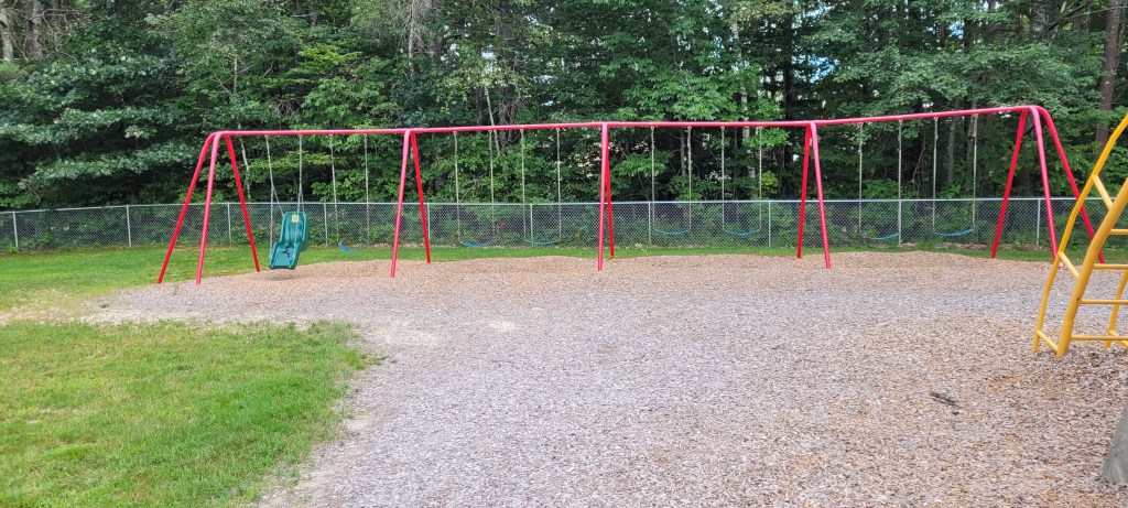 Behind the playgrounds are two sets of swingsets. One has a chair swing and regular swings. The second set is smaller lower to the ground swings- my 17m old LOVED this, having previously not liked swings this was perfect for him.