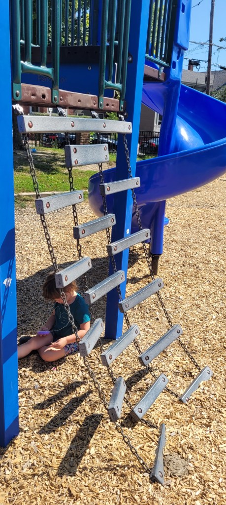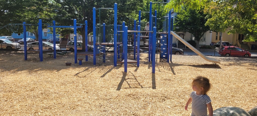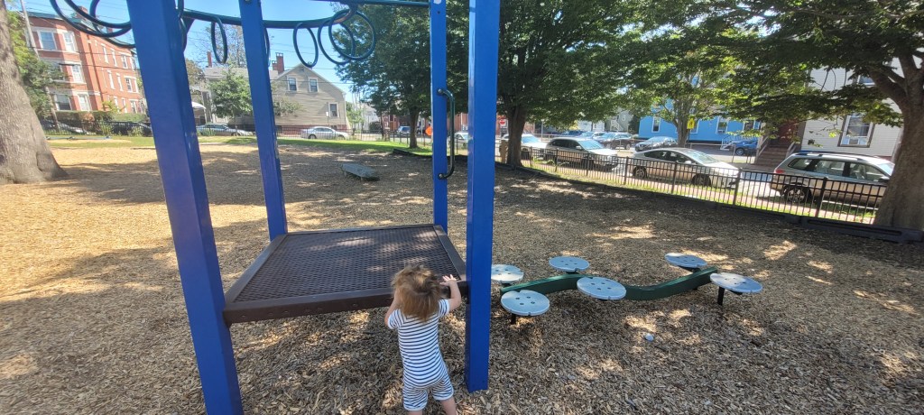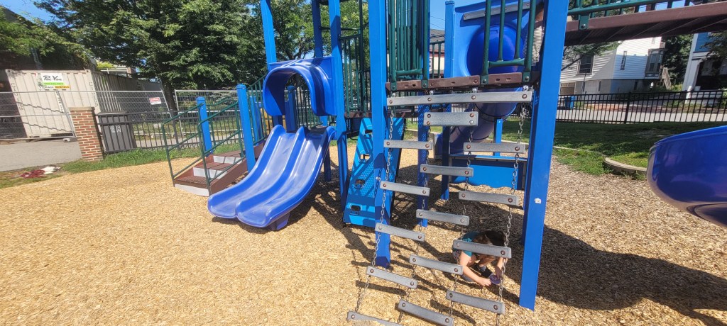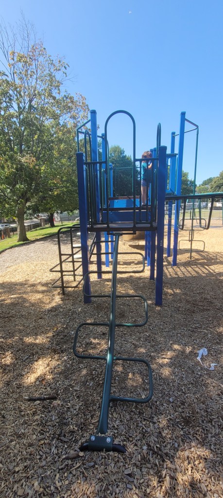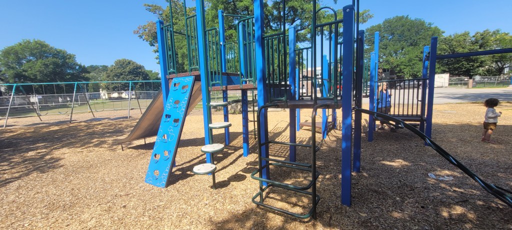 This one is okay. With it being mostly in the sun, the equipment gets really hot so that knocks out a lot of what can be done, even the partially shaded playground. The parking makes it difficult too. I had to circle a few times before I said screw it I’ll park in the 5m drop off spot, as school was not in session while we were there. The walk back to our car double what it should’ve because I had three kids absolutely losing their shit because one didn’t want to leave, one didn’t want to be in the carseat I was carrying and the other just because. I think if you’re in the area, go for it but I wouldn’t drive here just for the playground, you’ll waste a lot of time between finding parking and walking.