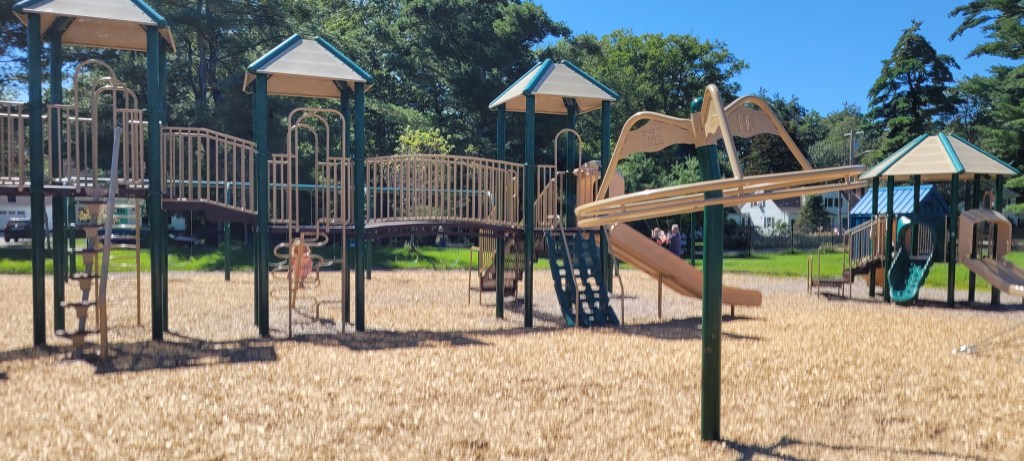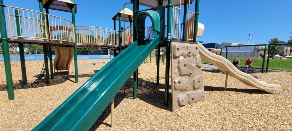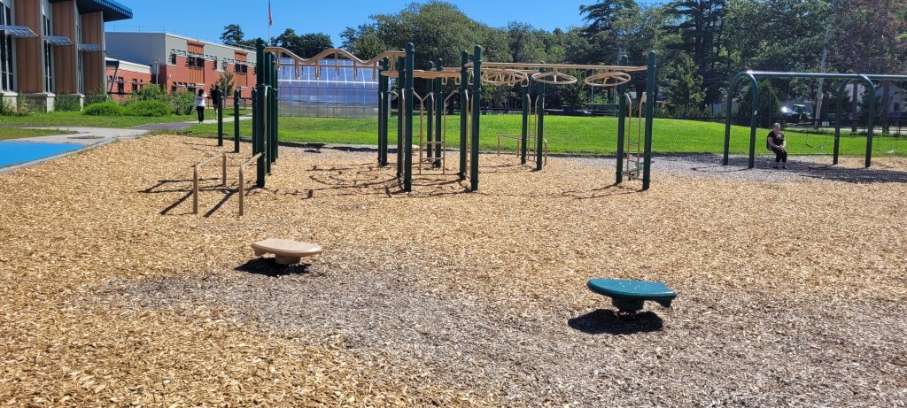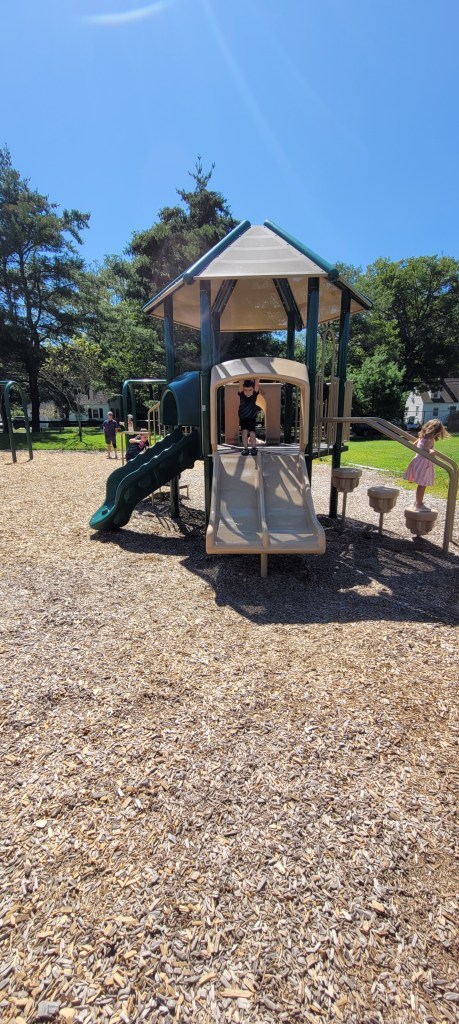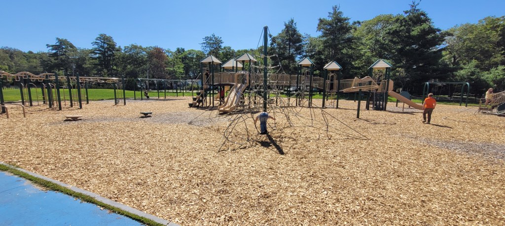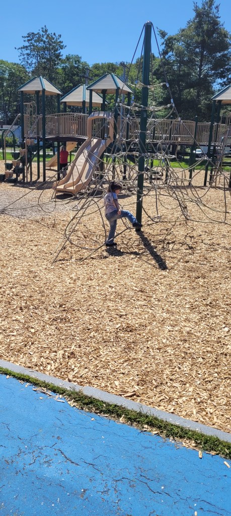 While I probably won’t come here again JUST for this playground, if I’m in Brunswick I’ll definitely stop here again. If I want something similar to this I’ll go to the Ocean Ave playground in Portland, half the distance for me. If you live in Brunswick or are closet than I am (40m) it’s worth checking out. There’s a lot to do and it has a nice field to sit and have a quick snack or to take just take a seat when your kid starts to lose steam. My 4y definitely loved it and my 17m would’ve liked the toddler area. However he would’ve eventually made his way over to the bigger area with more things to do and with its height and all of the openings at the top. I definitely would have to follow him up and down. There were a lot of kids so I don’t think that would’ve been an easy task.