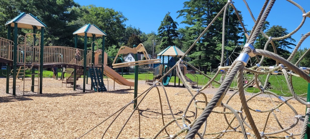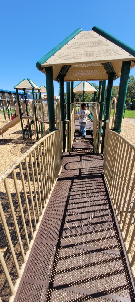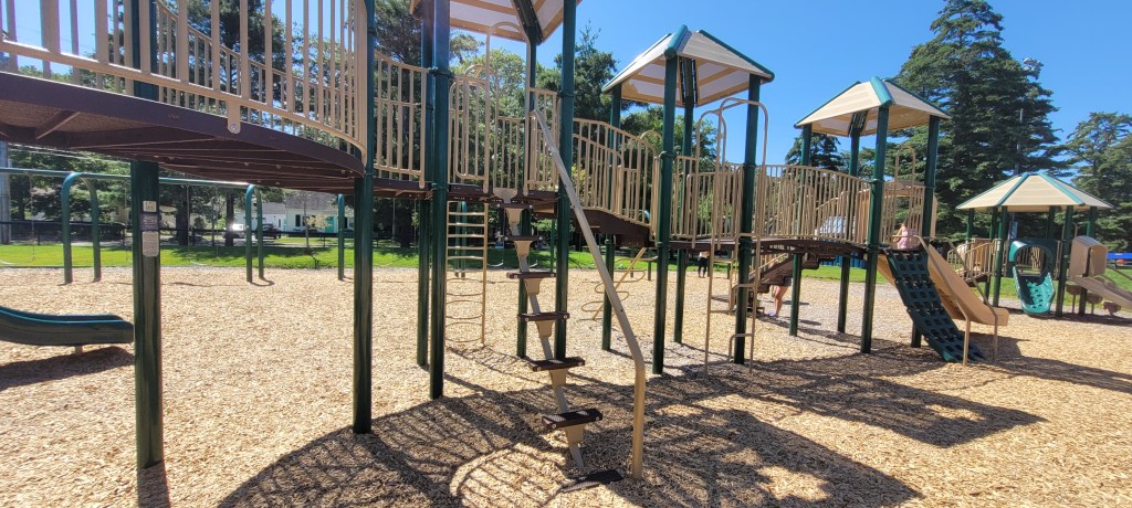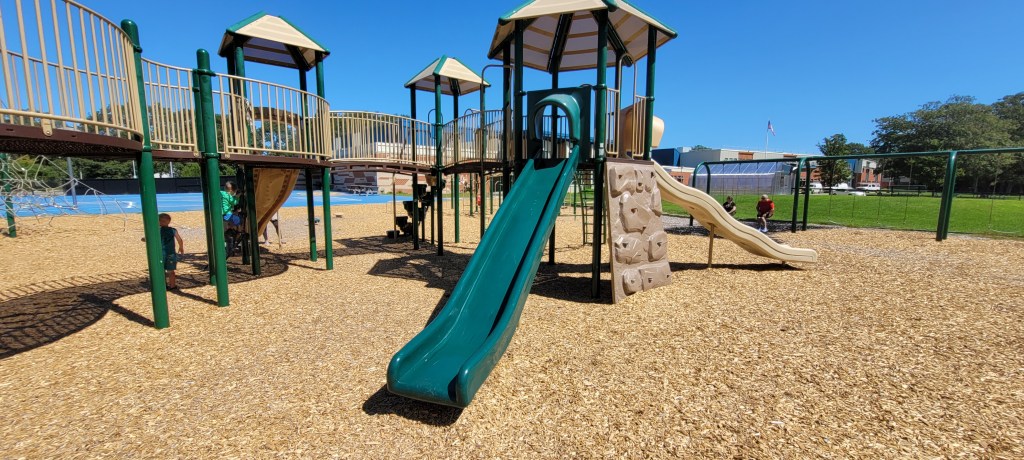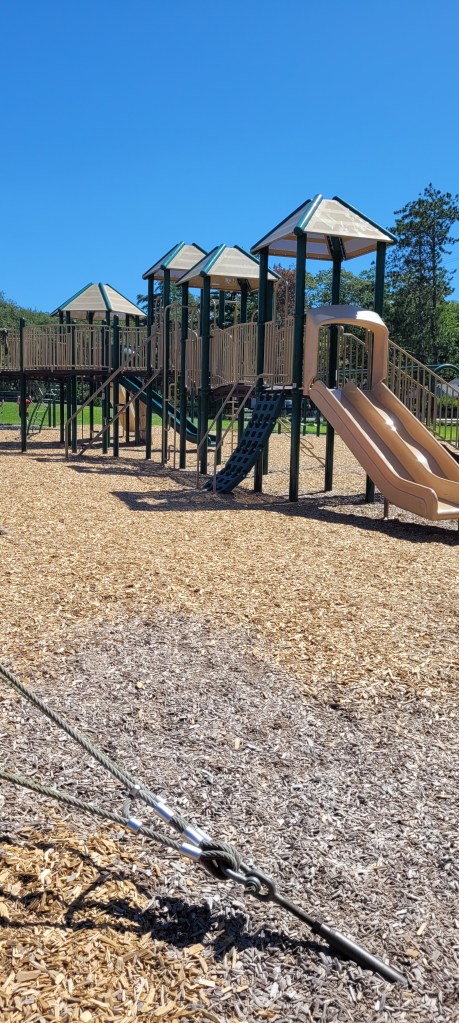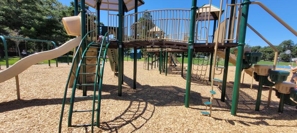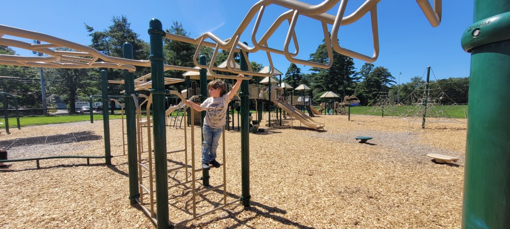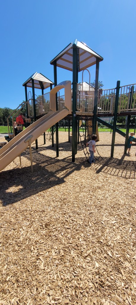 I saw this playground as I was driving to a different playground and I knew we’d have to come back to it. It is HUGE, it reminds me a lot of the playground at Ocean Ave Elementary in Portland.