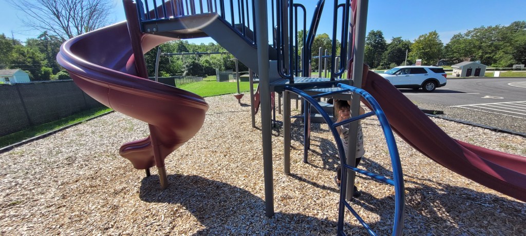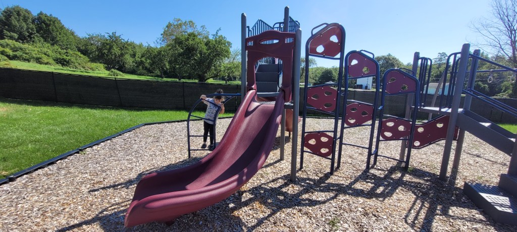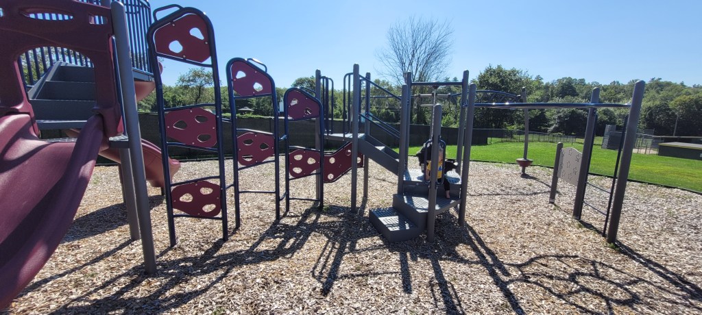 Parking is easy and there’s lots of it. The play ground is….just a let down. It’s one structure with one set of steps that leads to a holey rock walk wall to get to some slides. Neither, my 4y or 17m could do this to get to them. The only other ways up, is another holey wall that leads to the same place and a twisty ladder that goes directly to the slides. My 4y could do this but not my 17m. My son LOVES slides so this was so disappointing because he couldn’t go on them unless I physically put him on it and I could only do that for him for one of the two slides. Some monkey bars are near the steps. That’s it. That’s the while playground that I so excitedly anticipated for a year. What a let down.