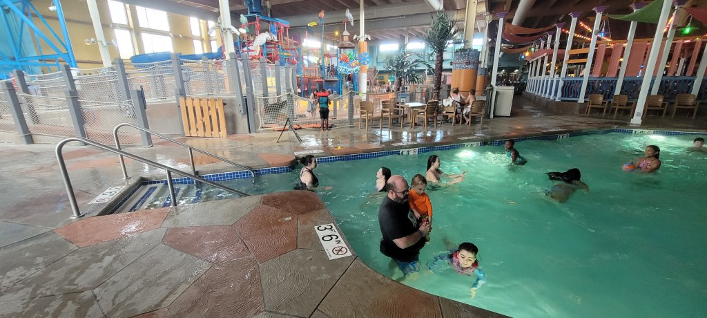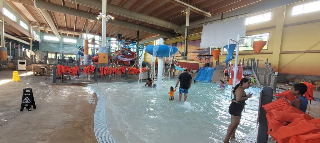 We got there pretty close to opening time so there were plenty of seats and tables to choose from. We sat nearby the toddler are thinking that’s where our kids would spend most of their time (boy were we wrong!). Along the net of this area are life jackets if you didn’t bring your own and they aren’t required but they are suggested.