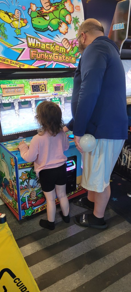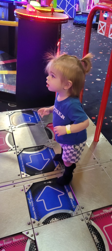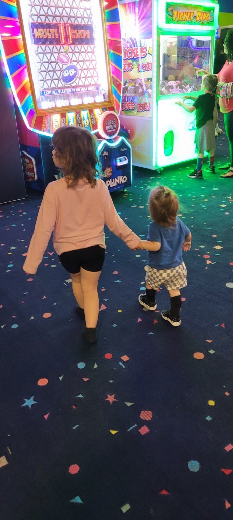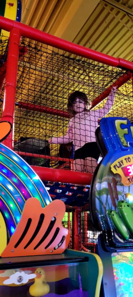 This place is mostly arcade games and you can find some classics to enjoy by everyone. My toddler and 4yo enjoyed games together even if they weren’t winning tickets. As a matter of fact, my 17m old enjoyed just walking around and looking at all the lights and commotion, stopping at a few to “play”.