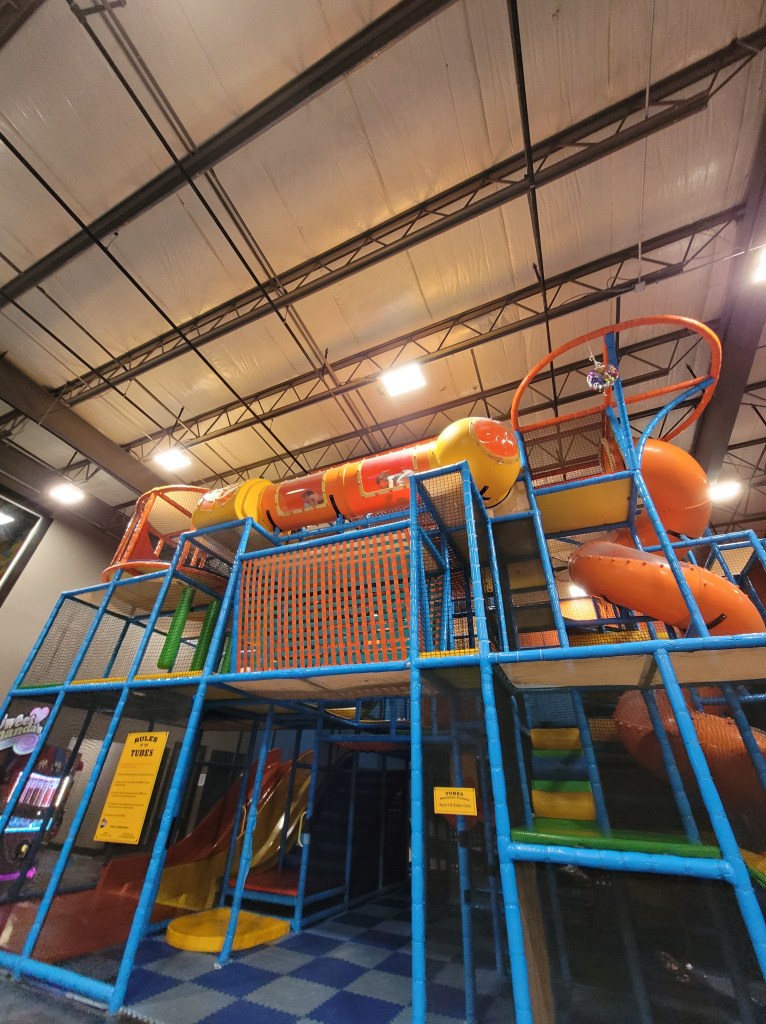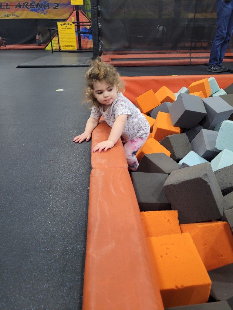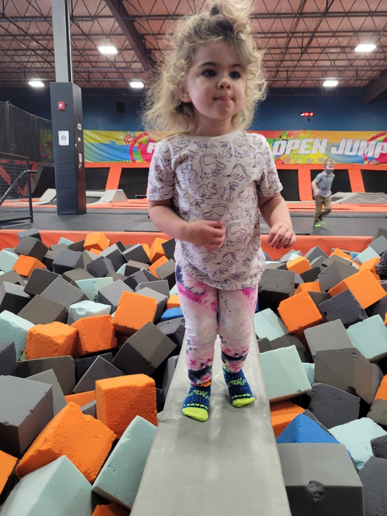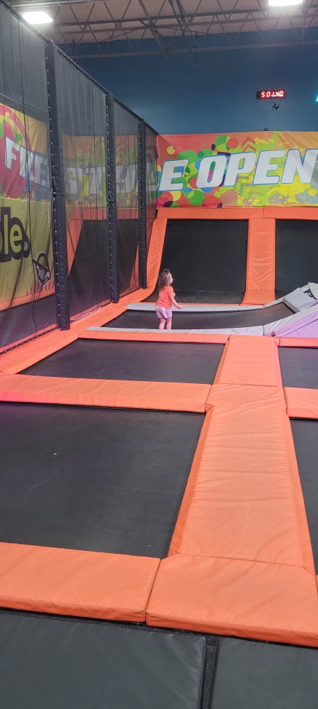 I like this place but don’t LOVE it. I say this because of its busyness. Keeping an eye on more than one child here is hard because what works and is fun for the toddler isn’t so much fun for the older 4yo. I tend to use this place on a day where it’s just my daughter and I because she likes to jump and has a blast through the playhouse. I don’t feel like i have to follow her through the playhouse (although I do sometimes) to make sure she doesn’t get hurt or lost, where as my son I do need to be there inside of it. The trampolines are fun until they’re not. You can only do so much on a trampoline and gets hot fast so there is a lot of let’s jump, let’s play, let’s rest, and repeat.