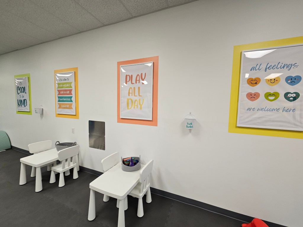 We spent two and a half hours here but easily could have stayed longer. My kids were so captivated by everything there was to play with and never got bored of anything. If they did get bored it was only for a little while and then they came back again. They played with everything multiple times during our visit. The owner was an absolute sweetheart. She apparently is a pediatric OT and she encourages questions about your little ones (I didn’t know this until after I got home, otherwise I would have had a million). She was not over bearing, she only intervened two or three times to reset some of the spaces, that kids had scattered toys throughout. I even saw her sanitizing toys from the “yuck buckets” well placed throughout all the areas. I tried to make my kids clean up after themselves but I didn’t feel a NEED to..or pressure if they didn’t. Overall, I give this place a double thumbs up and a must go. We definitely will be back and not only are my kids looking forward to it, I the mom can’t wait to go back either. With all the positive things I’ve said, you’re probably thinking there’s GOT to be some cons. And yes, I do have one but it is just a personal one. As much as there is to do, I wish it was still a little more filled out, especially towards the back. The outside wall of the nursing room could use something, maybe some touch and feels, a wall busy board, something just to fill the emptiness of it. Theres a few spaces like this that could easily home a few more open-ended play areas. With that said, this play space has only been open for three weeks and I for one am looking forward to watching the space grow and change as time goes on, again reiterating that I loved the space as it was today when we were there! Do yourself and your child(ren) a favor and go play at The Little Play Space in Aurburn, Maine. It’s very laid-back, very much child-led playing and it’s cost is inexpensive. It’s advertised for ages 0-6 and while agree a six year old can find fun here, I think there is more for toddlers to do, unless your prek-k child has a colorful imagination (as mine does).